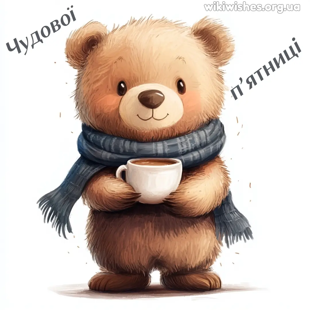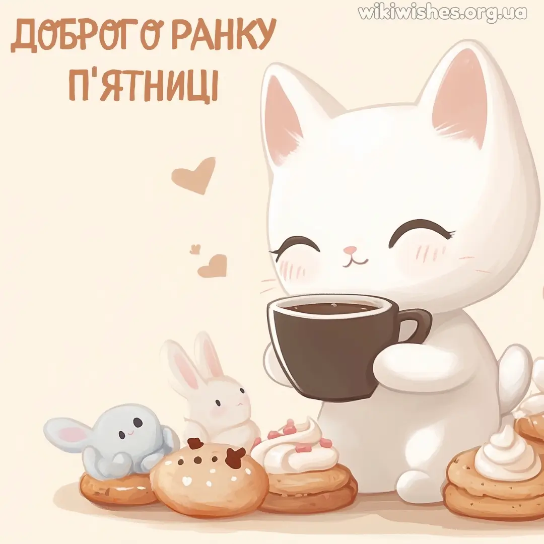 Вдалого дня п’ятниці! 🌟 Хай сьогодні тебе супроводжує гарний настрій, щирі усмішки і легкість у справах. Нехай цей день стане гідним завершенням тижня! 🐾☕